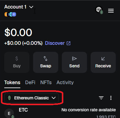 - Make sure MetaMask has the Ethereum Classic network available (if not, add it in MetaMask’s network settings).